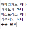 String coffeeRoss = "아메리카노"; String coffeeRachel = "카페모카"; String coffeeChandler = "라떼"; String coffeeMonica = "카푸치노"; System.out.println(coffeeRoss + " 하나"); System.out.println(coffeeRachel + " 하나"); System.out.println(coffeeChandler + " 하나"); System.out.println(coffeeMonica + " 하나"); System.out.println("주세요");이제 이 코드를 아래에서 포스팅 할 배열로 만들어 사용해보겠습니다.