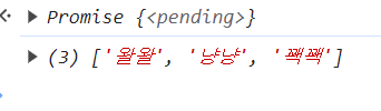 실행결과 then 이 실행되는 순서는 await 후 다음 수행문을 실행하고 나서 라는 것을 확인 할 수 있다.