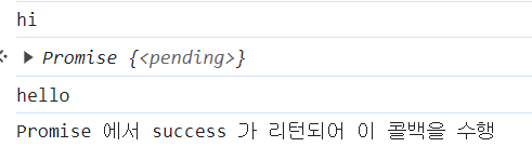 process() .then(() =>{ console.log('Promise 에서 success 가 리턴되어 이 콜백을 수행'); });