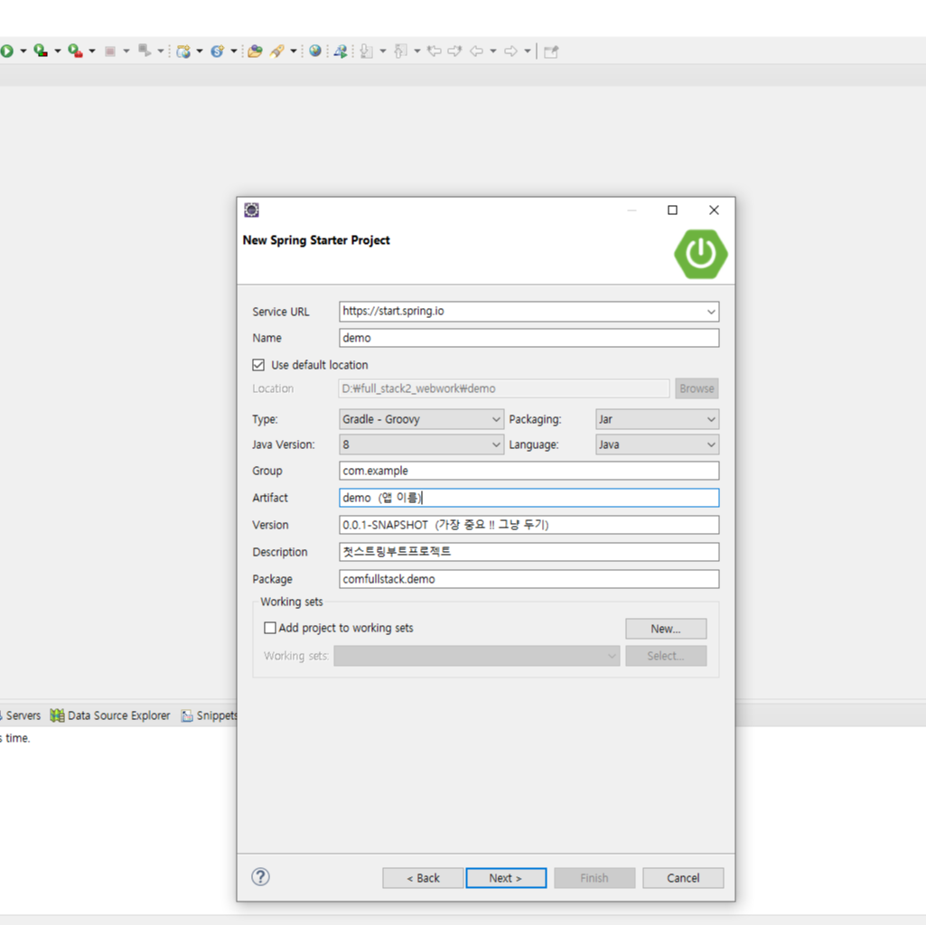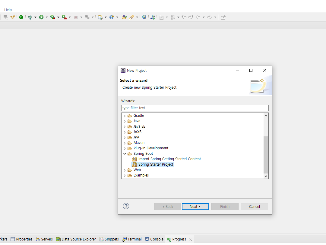 help → eclipce MarketPlace → spring boot 라고 검색 → 4.19.1 버전 install → 모두다 default 로 설치해주면끝