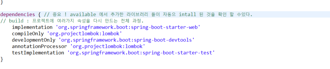 Spring Boot 는 본인이 필요한 기능들을 동적으로 다운로드 해주므로 따로 buildPath 가 필요없다.